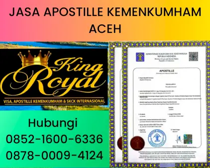Kingroyal Adalah biro jasa Apostille kemenkumham Aceh,yang terpercaya dan Berpengalaman,Kami Akan siap membantu anda Karna rumitnya Dan waktu yang lama mengurus Apostille, Sekarang anda tidak perlu berkecil hati Atau pun pusing, serahkan segala pengurusan legalisir kepada kami, kami akan membantu anda Untuk legalisir dokumen yang anda perlukan, diantaranya Menerjemahan Dokumen dengan penerjemah tersumpah, Legalisir kementerian hukum dan ham, Kementerian Luar negeri, Kementerian Agama, Notaris, dikti dan Kedutaan mana pun yang anda perlukan.