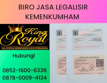 Kingroyal Adalah satu-satunya biro jasa legalisir kemenkumham yang terpercaya dan Berpengalaman,Kami Akan siap membantu anda Karna rumitnya Dan waktu yang lama mengurus Legalisir di keduraan, Sekarang anda tidak perlu berkecil hati Atau pun pusing, serahkan segala pengurusan legalisir kepada kami, kami akan membantu anda Untuk legalisir dokumen yang anda perlukan, diantaranya Menerjemahan Dokumen dengan penerjemah tersumpah, Legalisir kementerian hukum dan ham, Kementerian Luar negeri, Kementerian Agama, Notaris, dikti dan Kedutaan mana pun yang anda perlukan.
