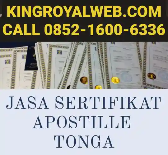 Kingroyal Adalah satu-satunya biro jasa Sertifikat Apostille Tonga di kemenkumham,yang terpercaya dan Berpengalaman,Kami Akan siap membantu anda Karna rumitnya Dan waktu yang lama mengurus Apostille, Sekarang anda tidak perlu berkecil hati Atau pun pusing, serahkan segala pengurusan legalisir kepada kami, kami akan membantu anda Untuk legalisir dokumen yang anda perlukan, diantaranya Menerjemahan Dokumen dengan penerjemah tersumpah, Legalisir kementerian hukum dan ham, Kementerian Luar negeri, Kementerian Agama, Notaris, dikti dan Kedutaan mana pun yang anda perlukan.
