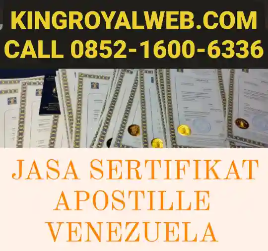 Kingroyal Adalah satu-satunya biro jasa Sertifikat Apostille Venezuela di kemenkumham,yang terpercaya dan Berpengalaman,Kami Akan siap membantu anda Karna rumitnya Dan waktu yang lama mengurus Apostille, Sekarang anda tidak perlu berkecil hati Atau pun pusing, serahkan segala pengurusan legalisir kepada kami, kami akan membantu anda Untuk legalisir dokumen yang anda perlukan, diantaranya Menerjemahan Dokumen dengan penerjemah tersumpah, Legalisir kementerian hukum dan ham, Kementerian Luar negeri, Kementerian Agama, Notaris, dikti dan Kedutaan mana pun yang anda perlukan.