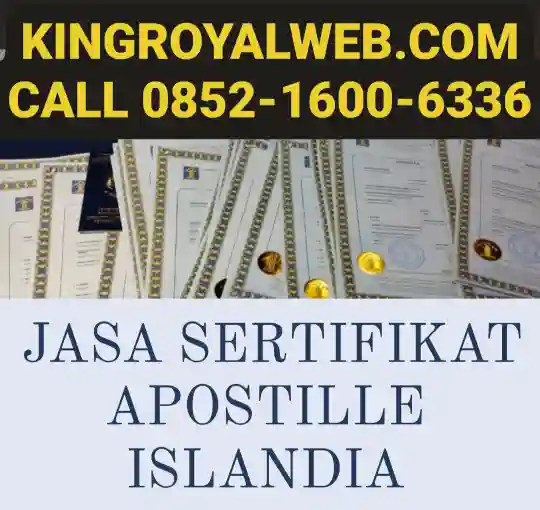 Kingroyal Adalah satu-satunya biro jasa Sertifikat Apostille Islandia di kemenkumham,yang terpercaya dan Berpengalaman,Kami Akan siap membantu anda Karna rumitnya Dan waktu yang lama mengurus Apostille, Sekarang anda tidak perlu berkecil hati Atau pun pusing, serahkan segala pengurusan legalisir kepada kami, kami akan membantu anda Untuk legalisir dokumen yang anda perlukan, diantaranya Menerjemahan Dokumen dengan penerjemah tersumpah, Legalisir kementerian hukum dan ham, Kementerian Luar negeri, Kementerian Agama, Notaris, dikti dan Kedutaan mana pun yang anda perlukan.